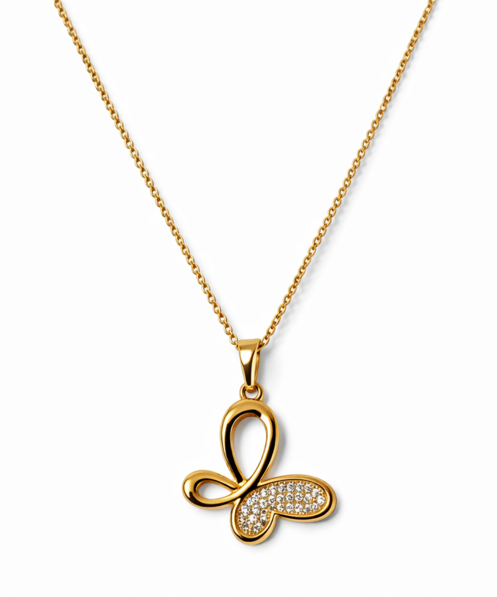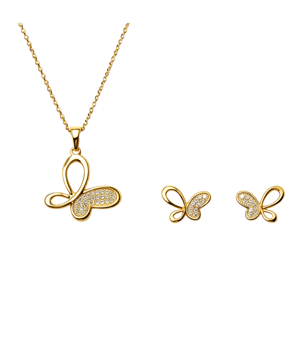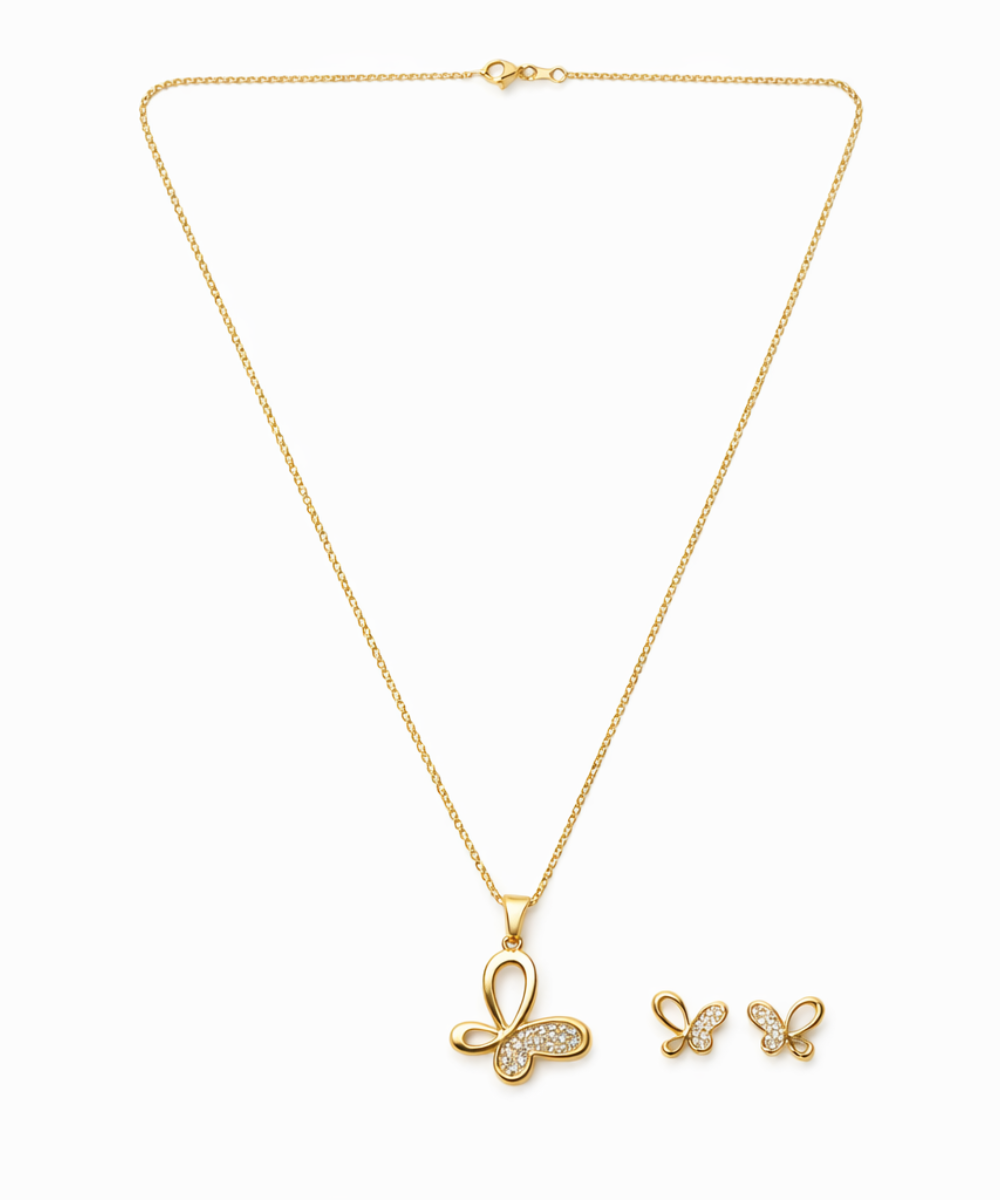 Aurum Golden Butterfly Diamond & Crystal Neclace Set