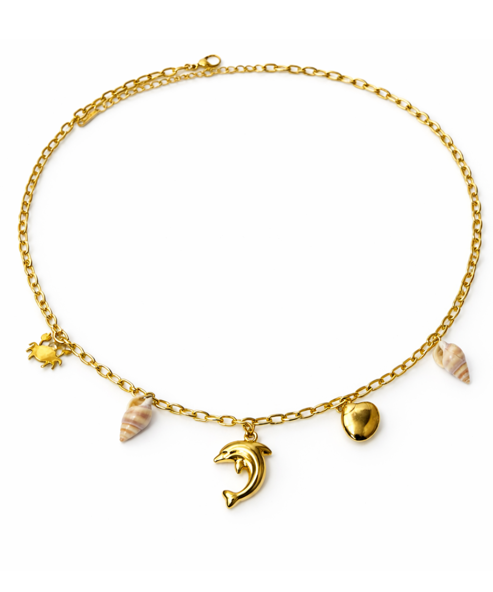 Dolphin Crab Ocean Charm Necklace With Seashell