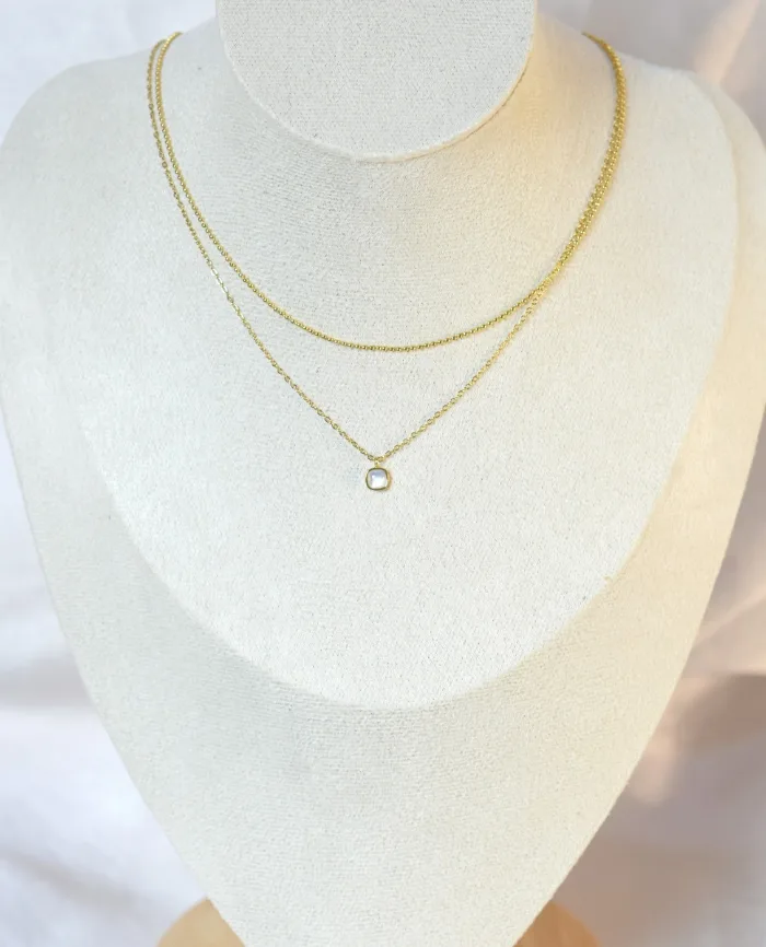 Made from 316L stainless steel with 18K premium gold plating, it features two delicate chains — one plain and one with a tiny circular pendant for subtle shine.