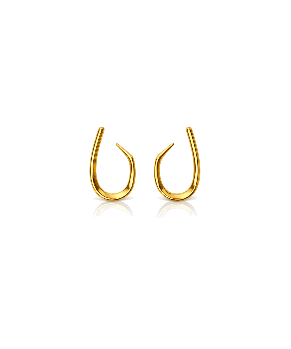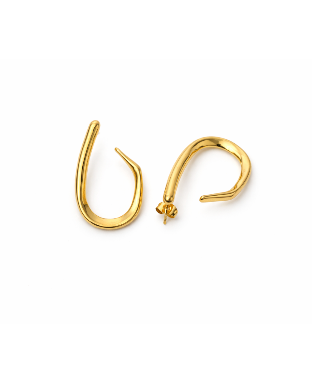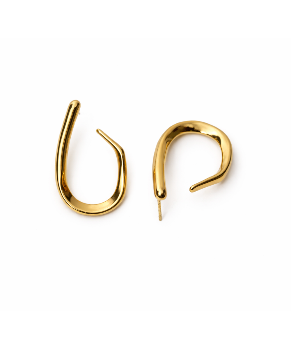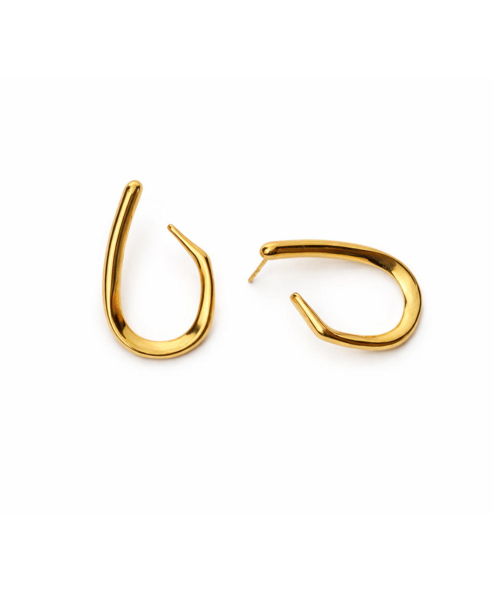 18K gold-plated minimalist hook earrings crafted from 316 stainless steel, featuring a sleek open-curve silhouette with a high-gloss polished finish, offering a comfort-lightweight fit, all-day skin comfort, and long-lasting shine.