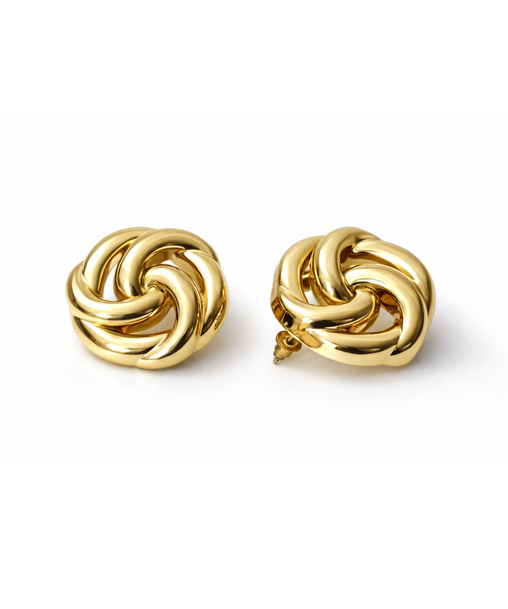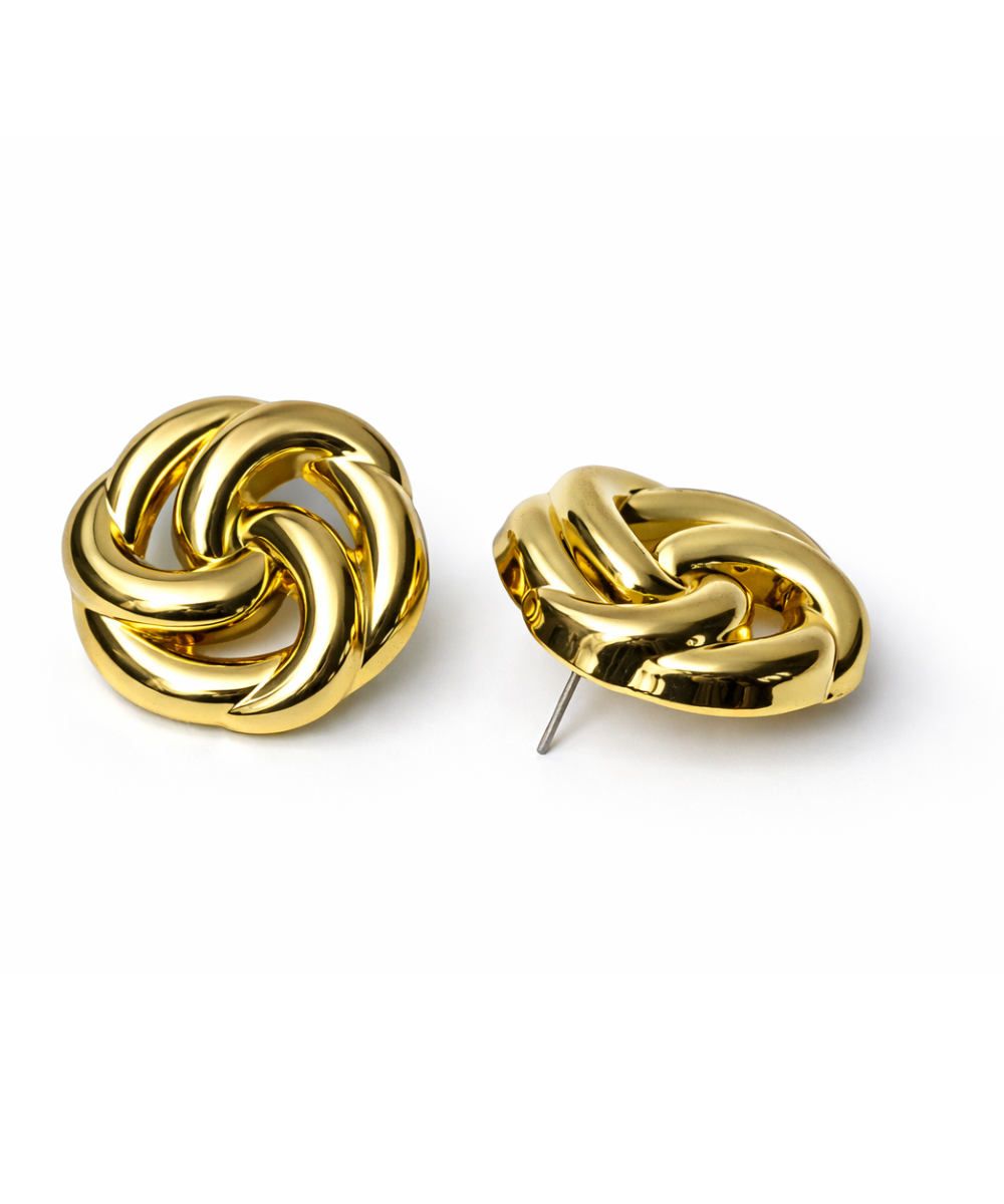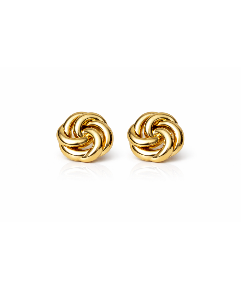 18K gold-plated twisted knot stud earrings crafted from 316 stainless steel, featuring an interwoven spiral design with a high-gloss polished finish.