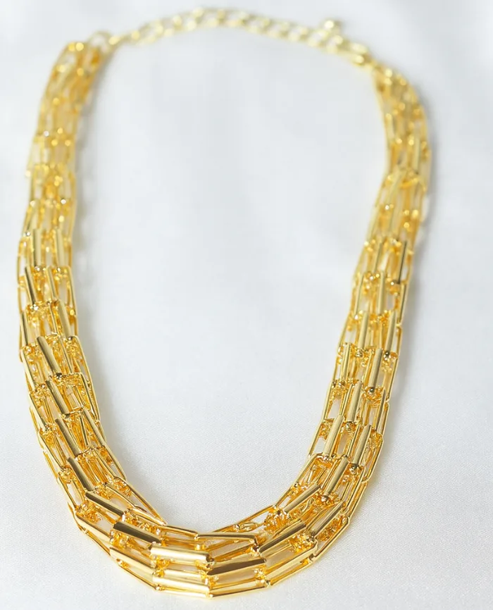 Golden Luxe Rectangular Link Necklace from Aangan Studios is a beautiful mix of modern style and classic luxury.