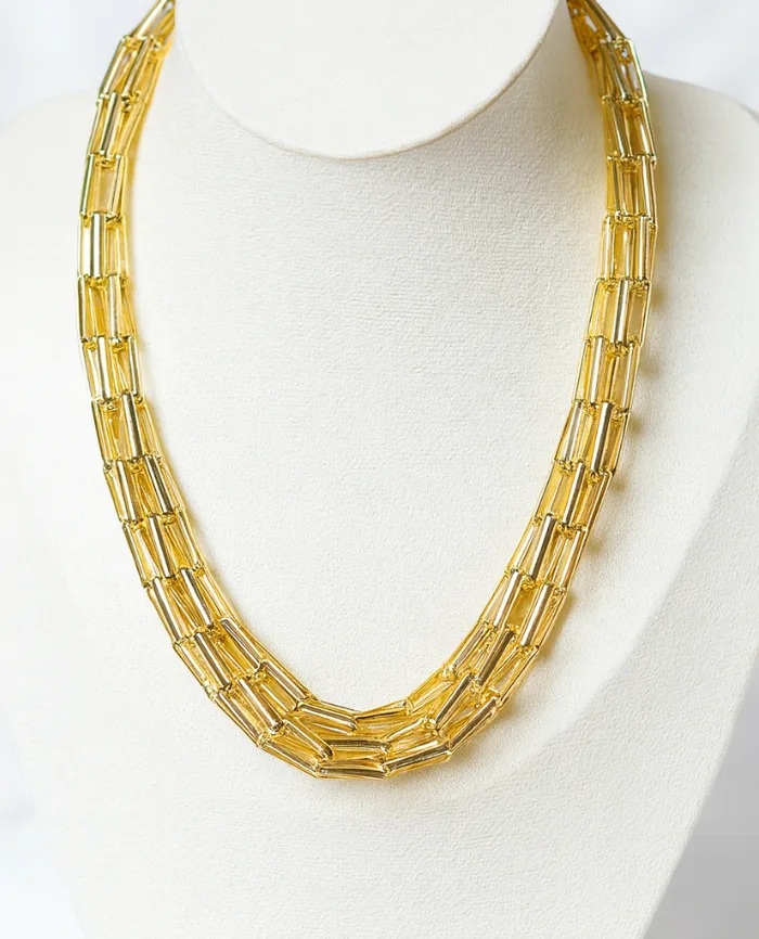Made from 316L stainless steel and coated with 18K premium gold, this double-layer rectangular link necklace shines with a smooth, mirror-like finish that stays bright and does not fade over time.