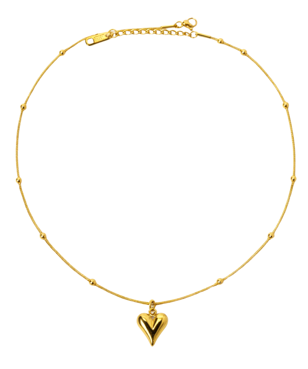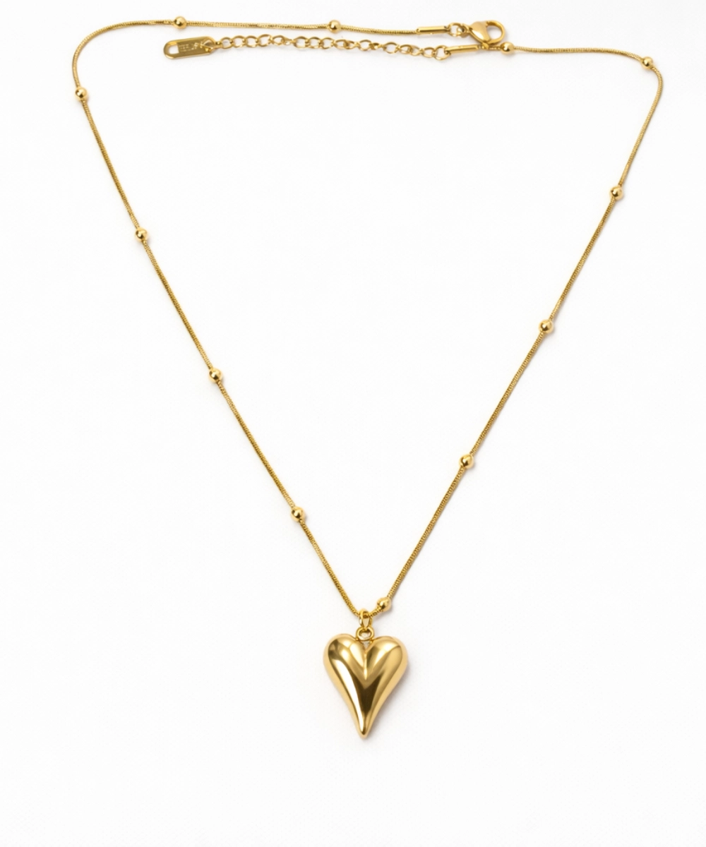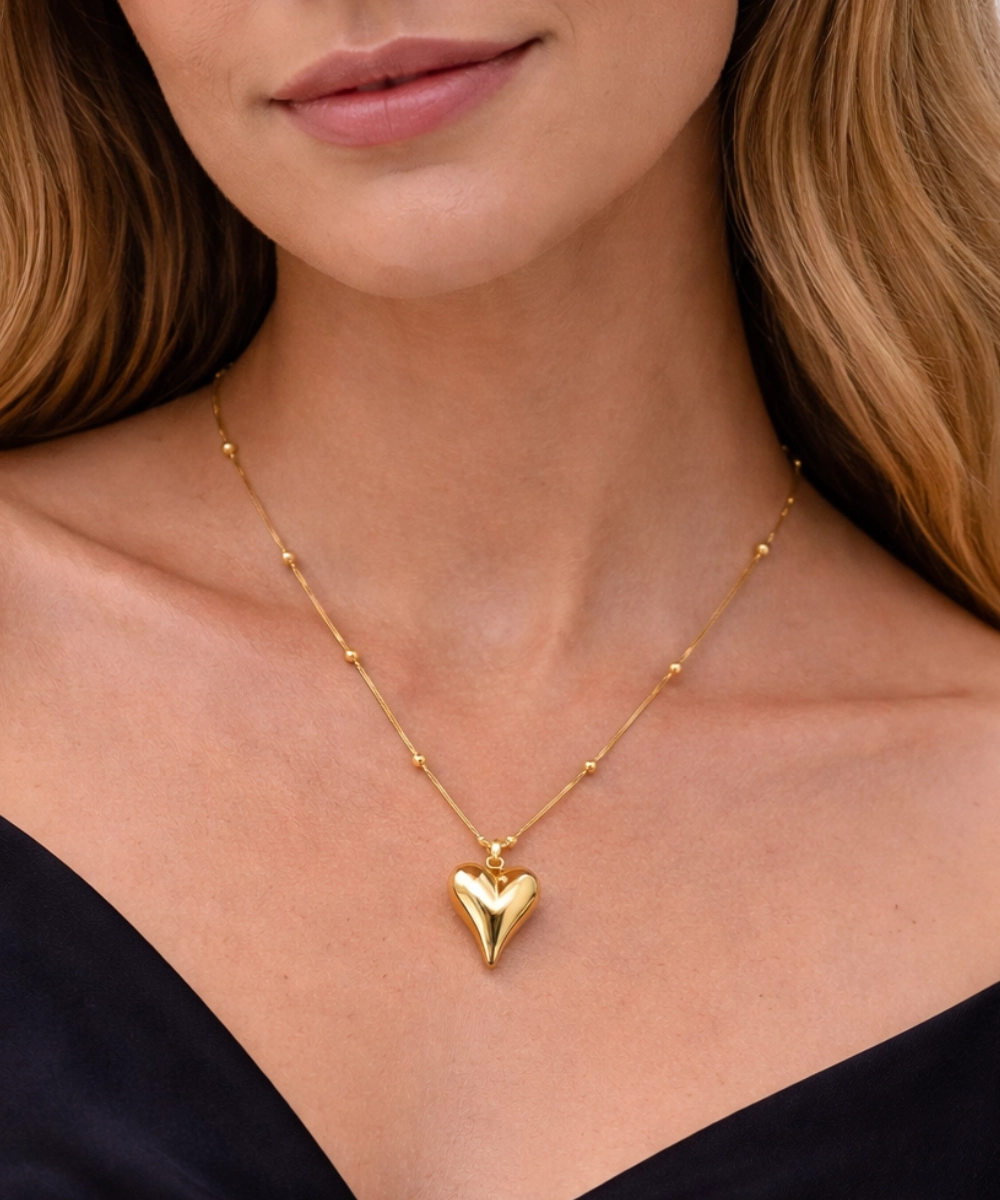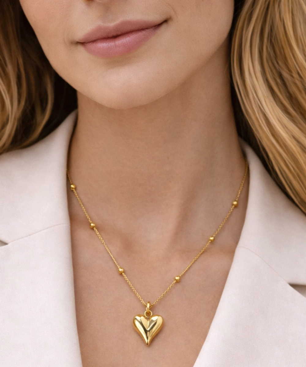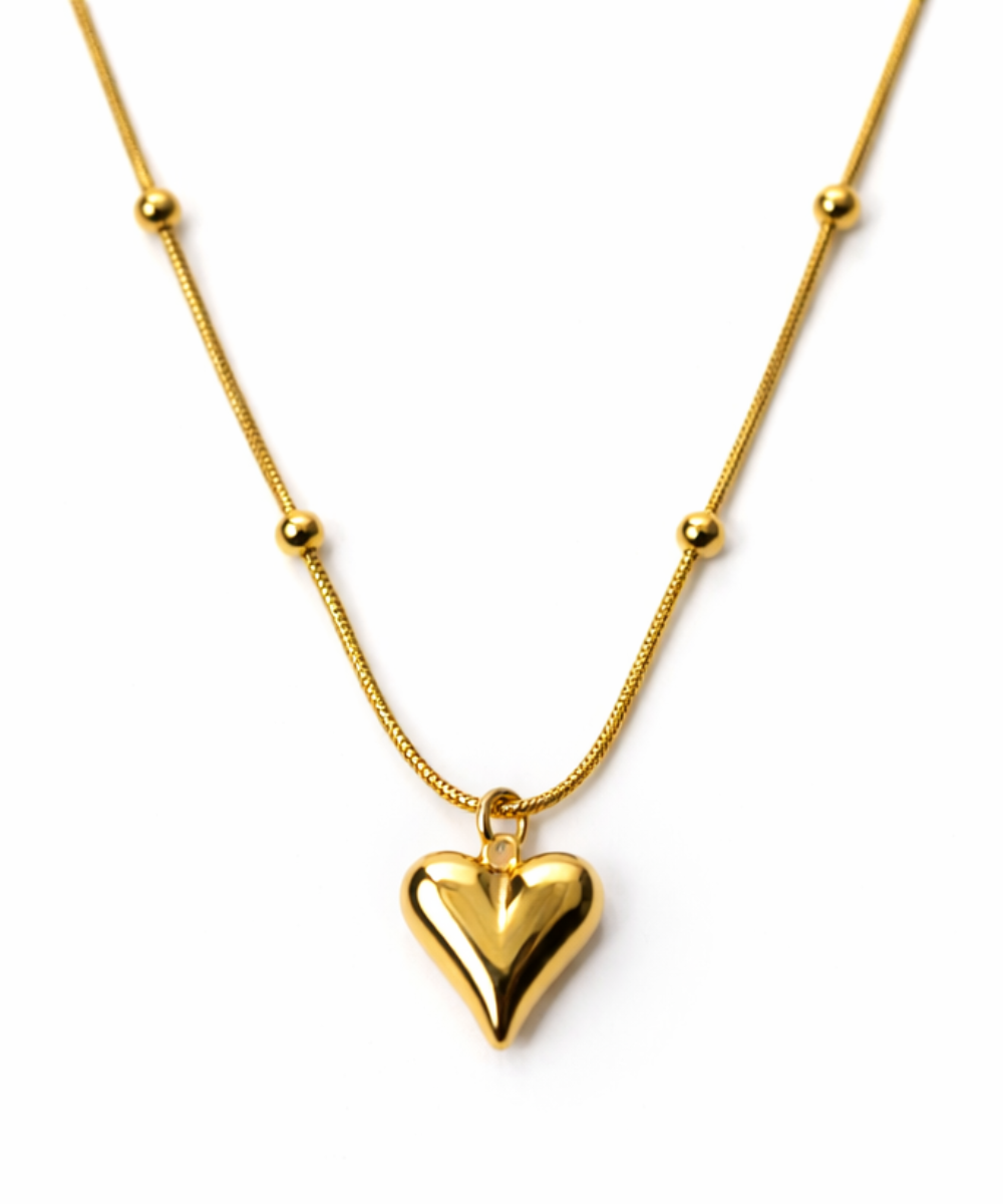 Golden Puff Heart Pendant Necklace