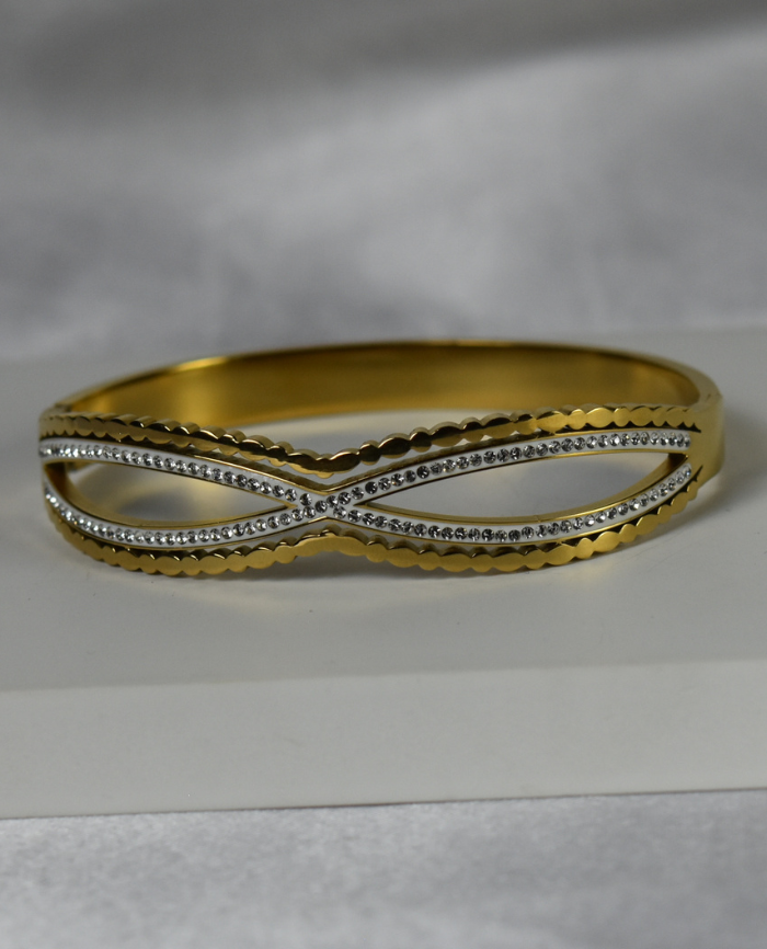 Radiate refined charm with the 18K Gold Plated Infinity Twist Crystal Bangle from Aangan Studios.