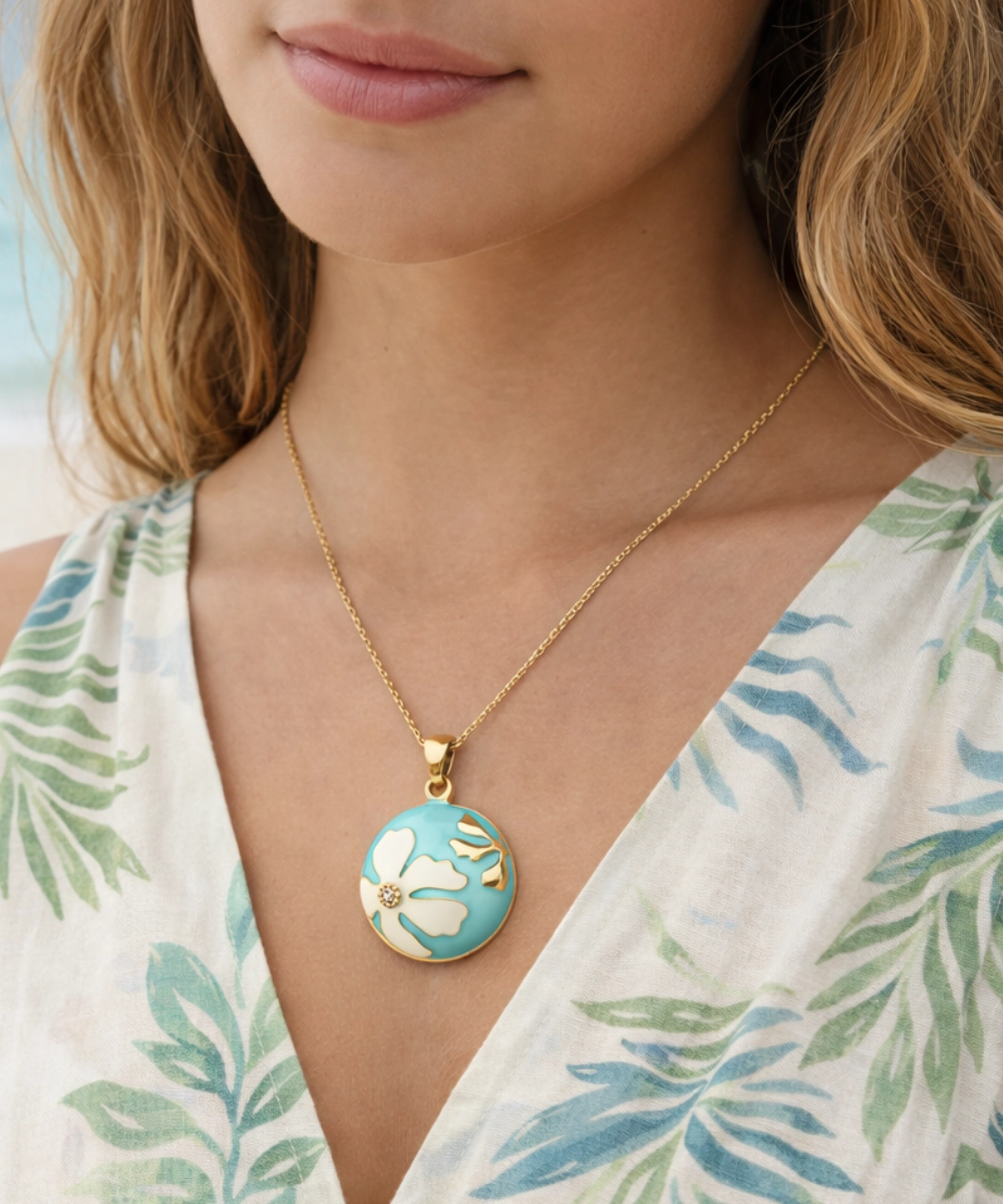 Ocean Bloom Enamel Pendant Necklace
