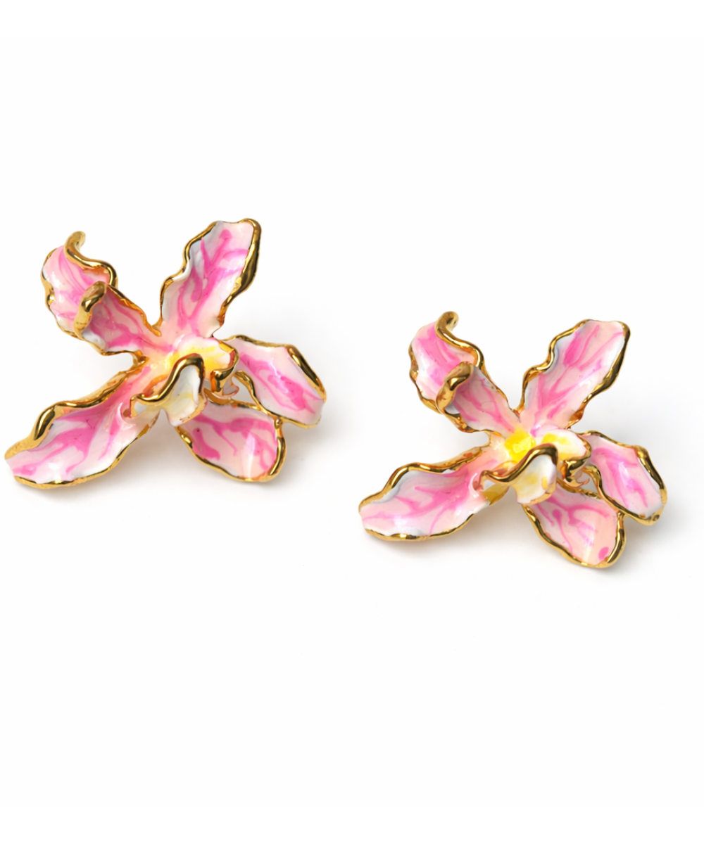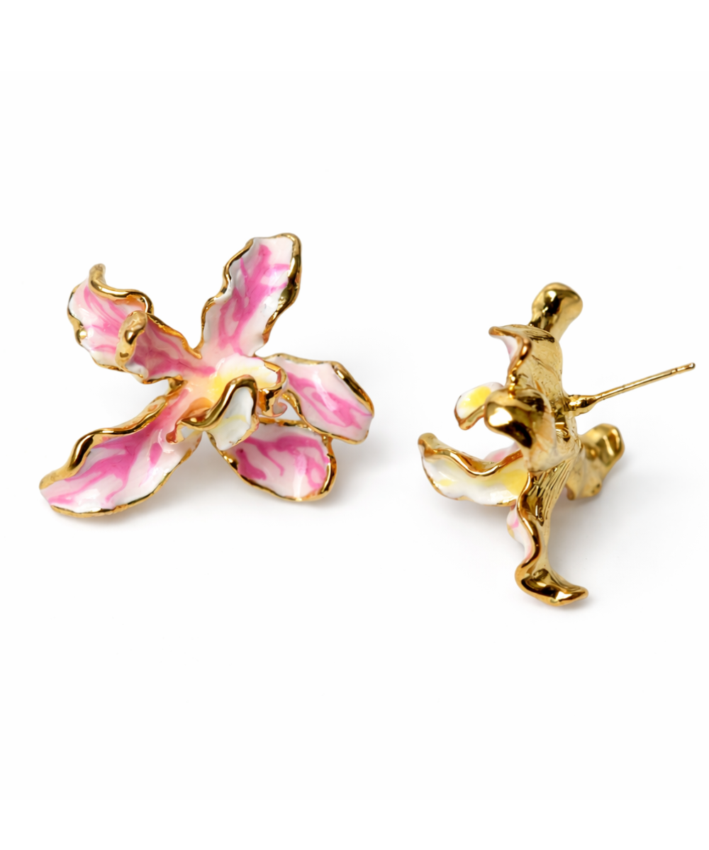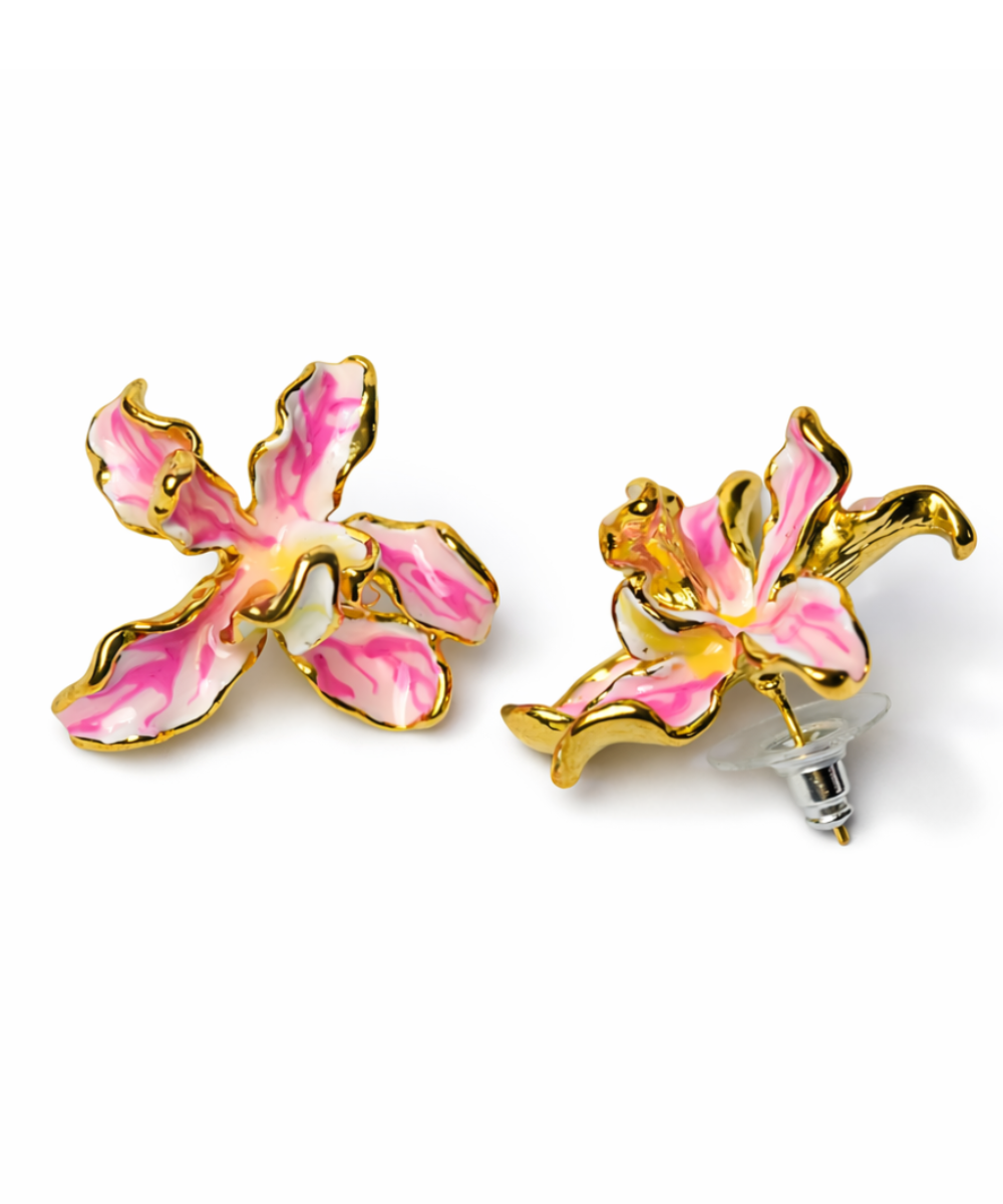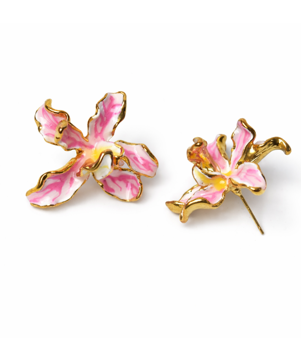 Orchid Enamel Pink Floral Statement Stud Earrings