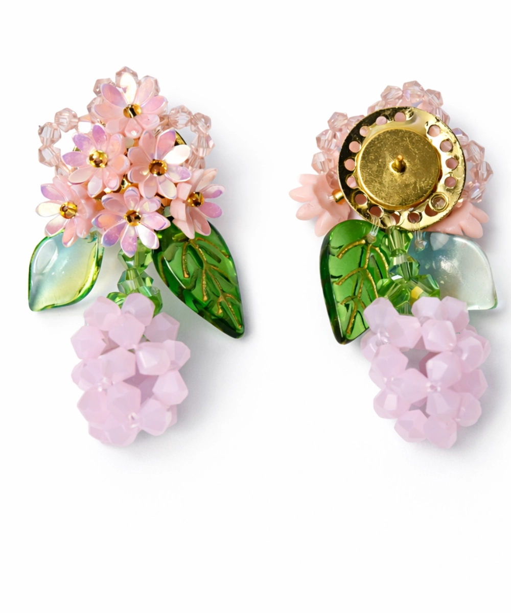 Petalora Floral Drop Pink Green Petal Dangler Earrings