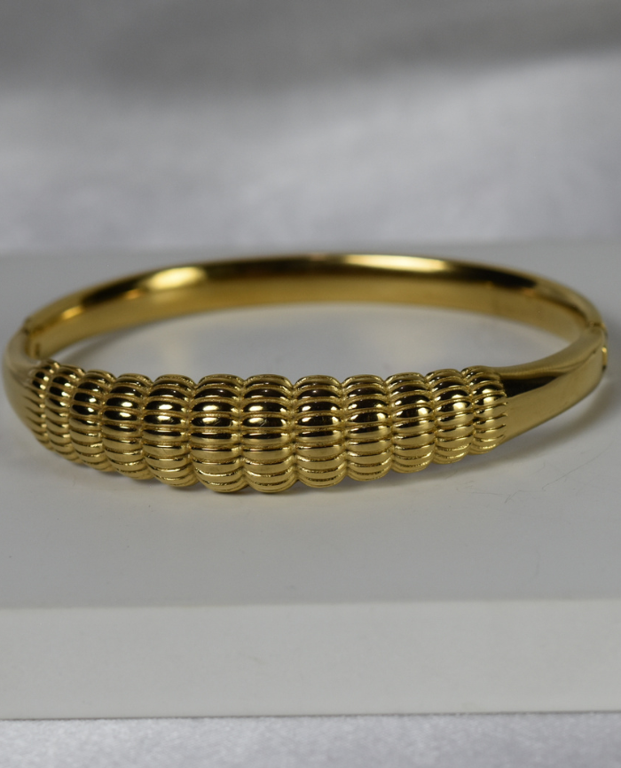 Radiate timeless charm with the 18K Gold Plated Textured Dome Bangle from Aangan Studios.