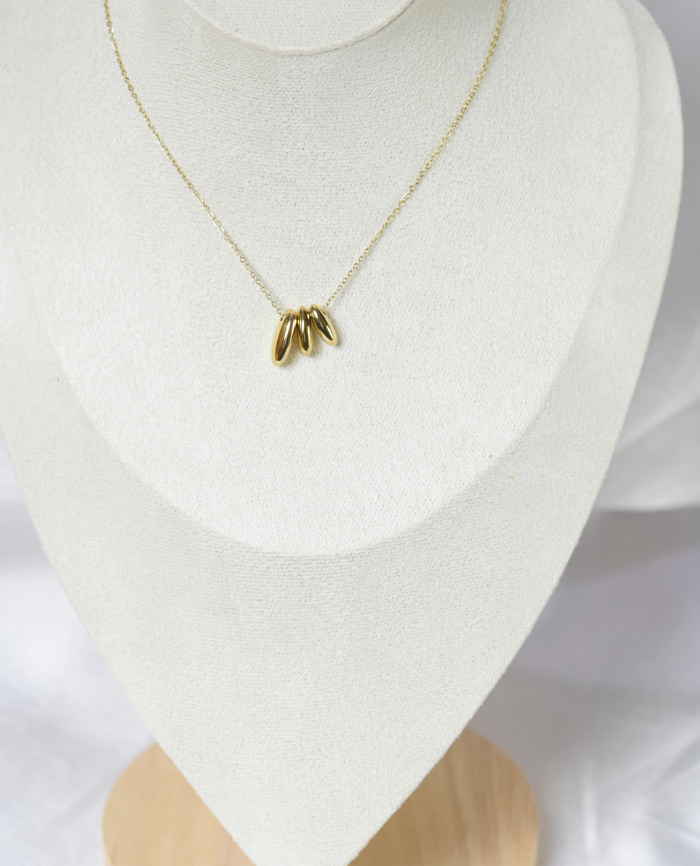 Made from 316L stainless steel with an anti-tarnish nano layer, it features three sleek gold drops on a refined link chain.