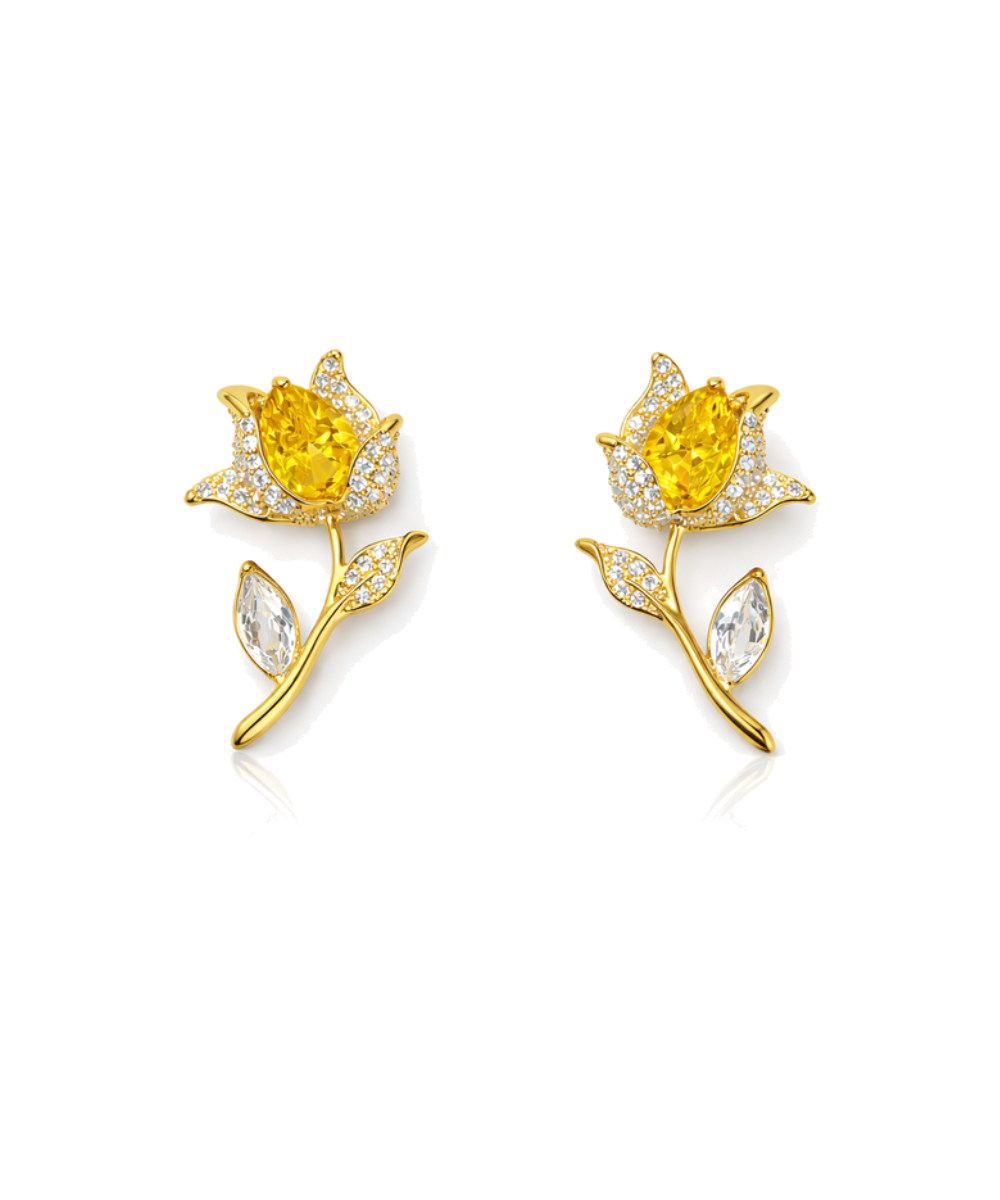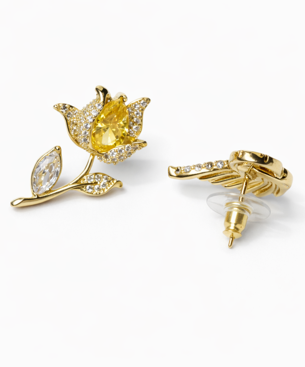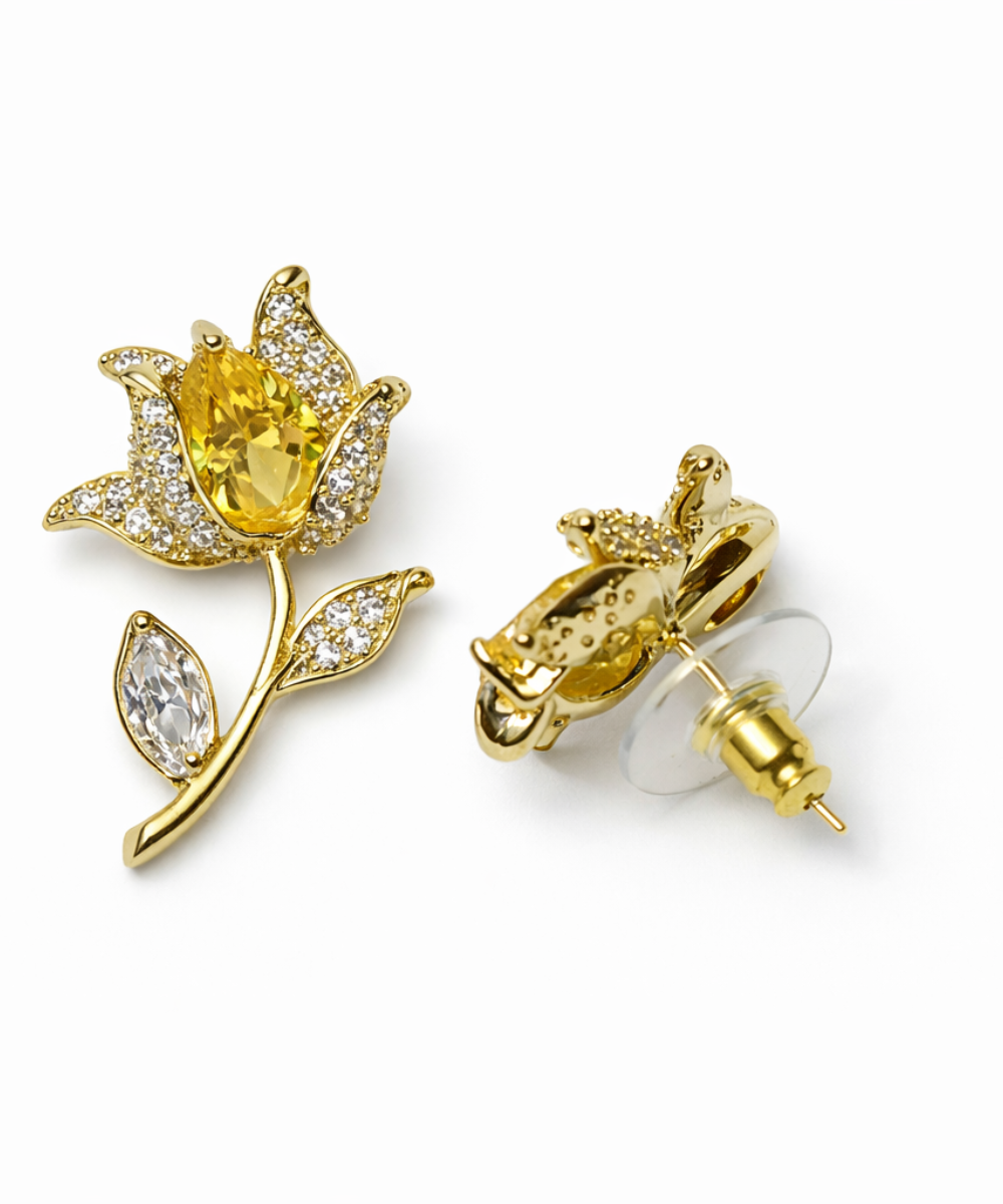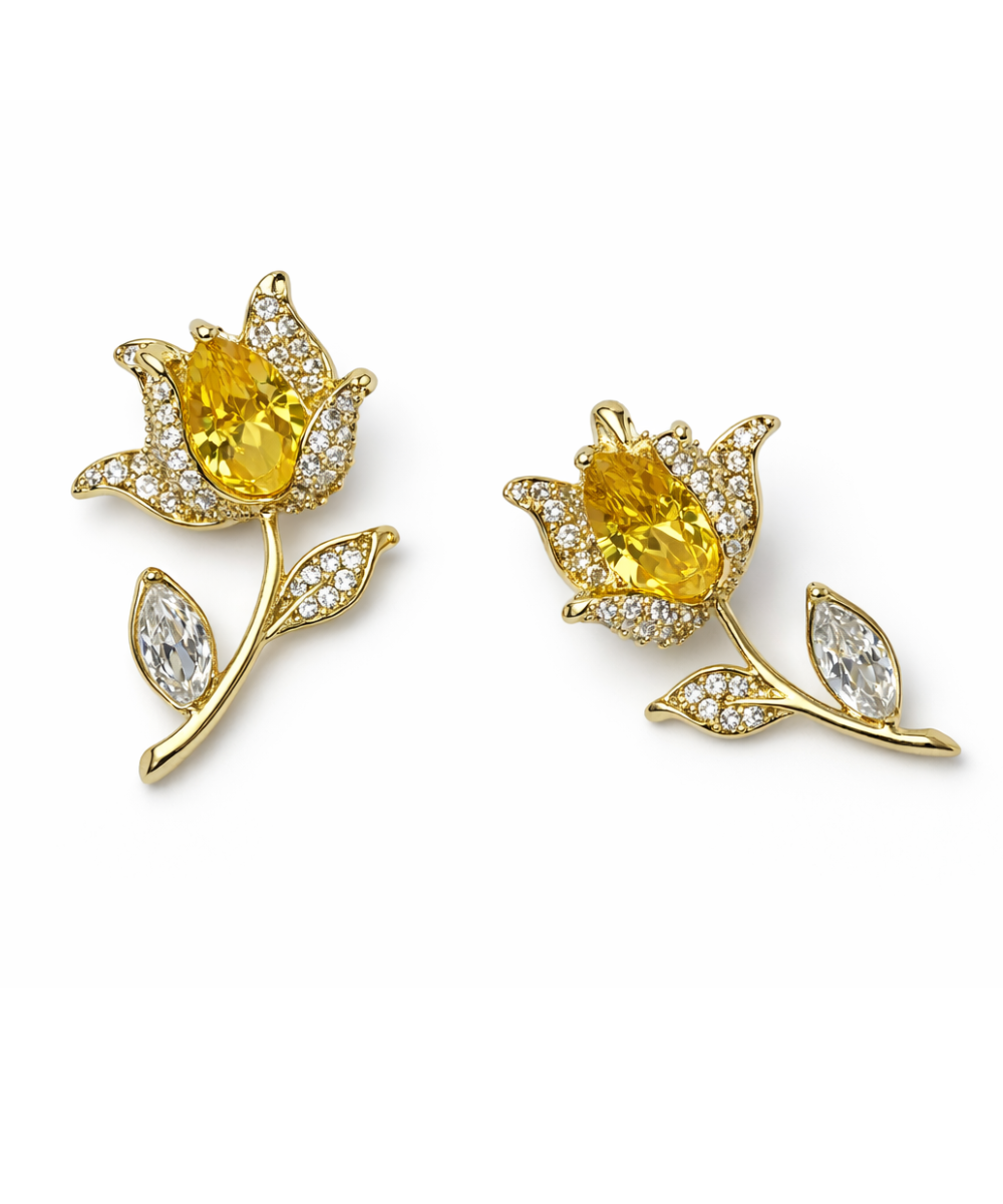Yellow Rose Zirconia Diamond Blooms Earrings