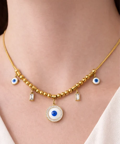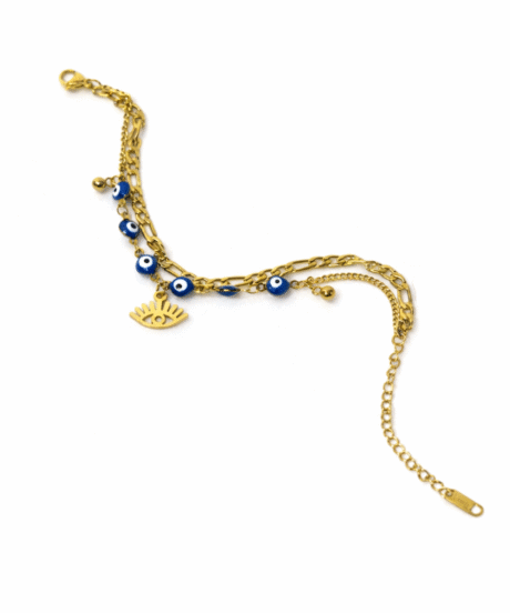 Golden Enamel Evil Eye Charmed Layered Bracelet